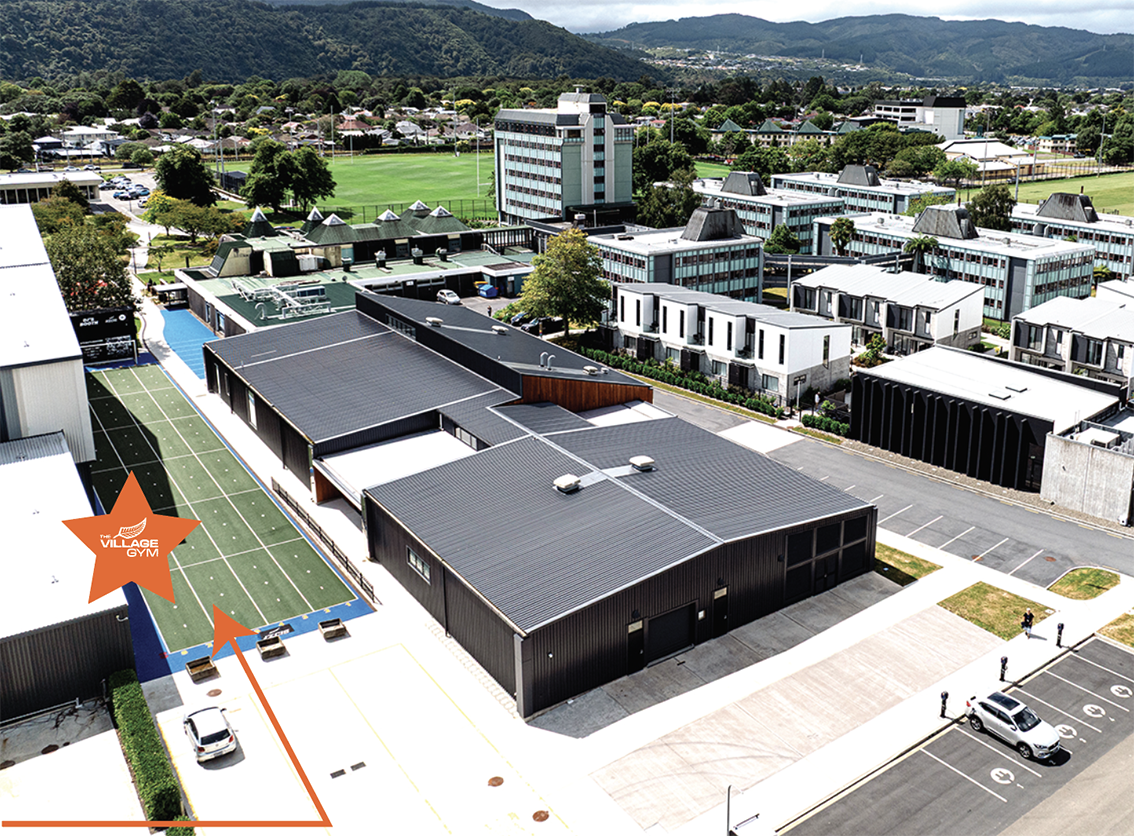 Drive around the back past our NZCIS gym and you will see the outdoor turf. The Village Gym is right by the turf.